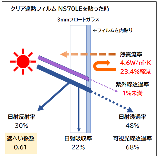 特に窓がフロートガラスの場合、遮熱効果を遮熱フィルムで、断熱効果を遮熱・断熱フィルムで、サッシのガラスを複層ガラスに入れ替えなくても大きなメリットを得られます。