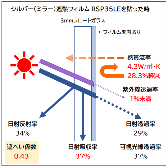 強貫通対策のフィルムに、遮熱の機能を持たせた製品があります。